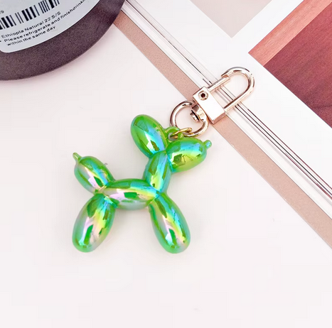 The keychain comes with a gold clasp that easily clips onto any loop, making it versatile and easy to attach or detach. The gold finish adds a touch of sophistication, beautifully contrasting with the pastel and bold hues of the balloon dog. The swivel clasp design allows the charm to move freely, adding a bit of movement and flair.
