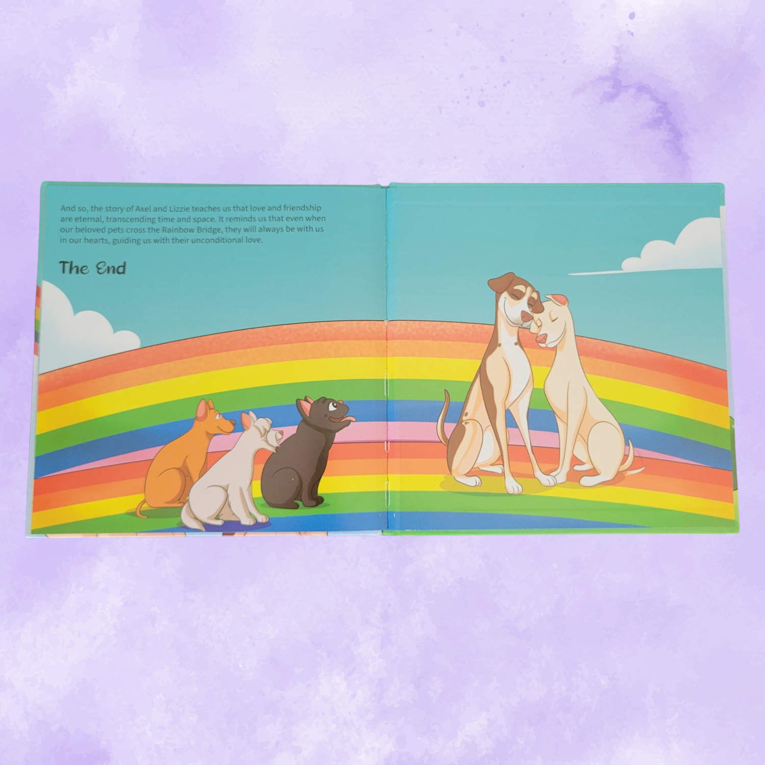 Join Axel, a blind Catahoula, ad Lizzie, a deaf Doberman, on a heartwarming journey of friendship, love, and the power of memories. In this touching children's book, Axel and Lizzie teach young readers about the Rainbow Bridge - a place where pets go when they pass away. As Lizzie embarks on her final adventure, Axel learns that even though his forever friend is no longer physically with him, their bond remains unbreakable. Through vivid illustrations and a tender narrative, "Lizzie and Axel: Forever Friends" gently helps children understand loss, remember cherished pets, and find comfort in the everlasting connections they share. This touching tale is a must-read for families, pet lovers, and anyone seeking solace in the enduring power of love.